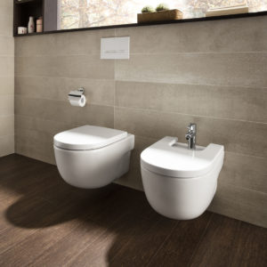 Comprenant : Cuvette de WC suspendue en porcelaine sans bride Rimless, et abattant Silencio