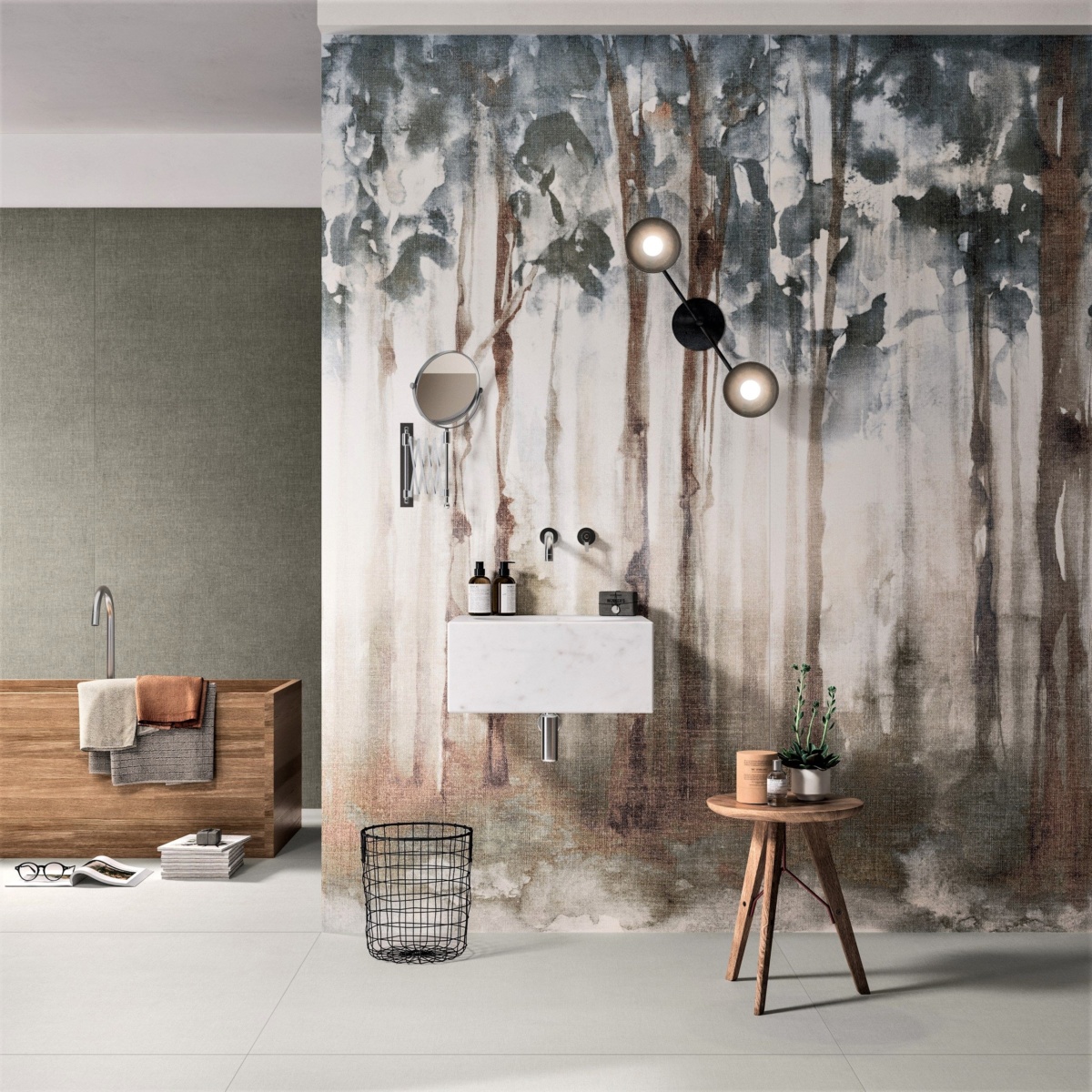 Ainsi, la nature pénètre à l’intérieur de l’architecture en restituant un effet papier peint avec tous les avantages du grès : imperméabilité, durabilité et facilité de nettoyage.